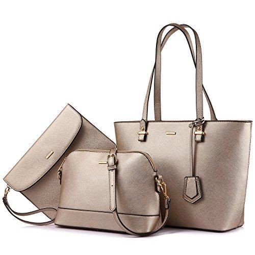 • ★★ バッグ レディース: ハンドバッグ、斜め掛けバッグ、クラッチバッグは人気の3点セットレディースカバンです。手提げとショルダーバッグにもなる2way仕様です。普段使いやお出かけはもちろん、オフィスシーンでもお使いいただけます。ご注意:弊社の全ての商品はアマゾンギフトメッセージとギフト包装を提供いたします。誕生日プレゼントとしてが最適です。